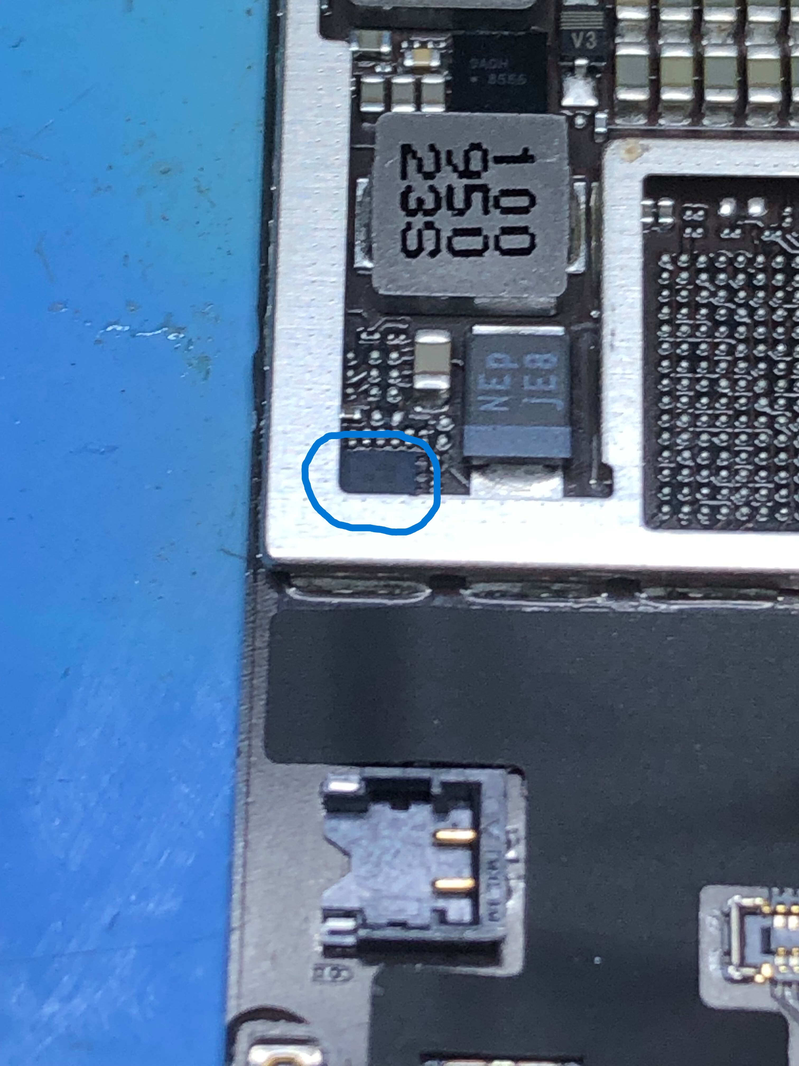 The process to fix the iPad 7 or any other device with this issue is to replace the tristar chip with a new tristar. The next photo shows the iPad 7 circuit board with the tristar circled. It's a small chip that's maybe 2mm in size.