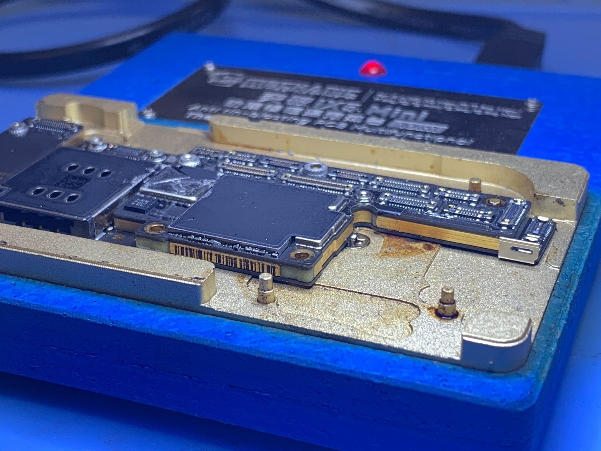 As always, we confirmed the issue and verified replacing basic components like the battery and charge port wouldn't fix the device. At this point we were confident it was an issue with the main logic board of the iPhone XS Max. The iPhone XS Max, like many newer iPhones has a sandwich circuit board which means there are two circuit boards that are soldered together along the edges. This helps save space when building a phone with so many IC chips.